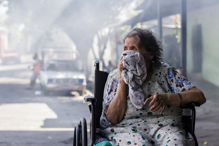 Read moreCarmen Chicas Mejia, 82, covers her mouth and nose while city workers fumigate her home in the San Judas Community in San Salvador, El Salvador, on January 26, 2016. #