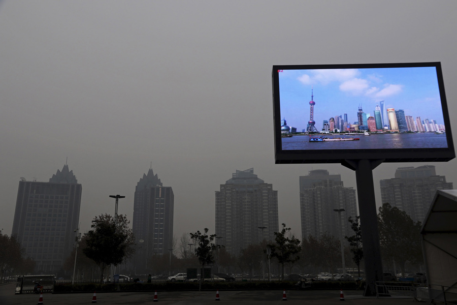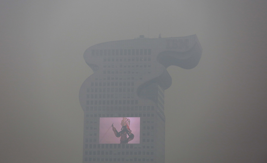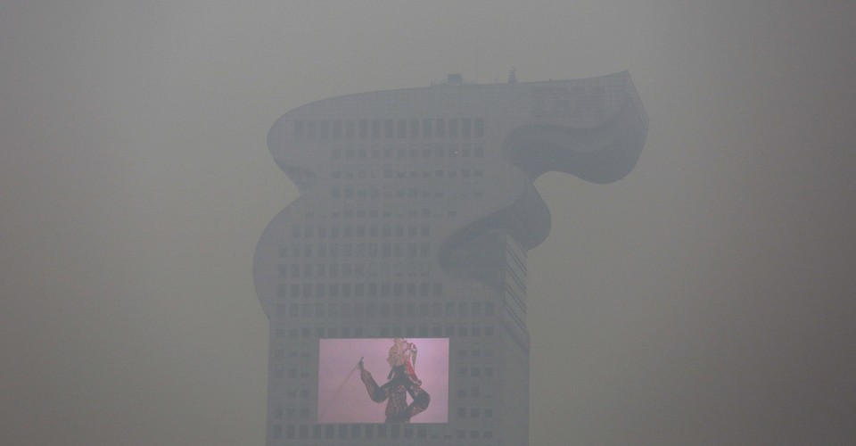 Read moreA building and a large screen seen through thick smog in Beijing on December 8, 2015, as China's capital issued its first ever “red alert” for pollution. #