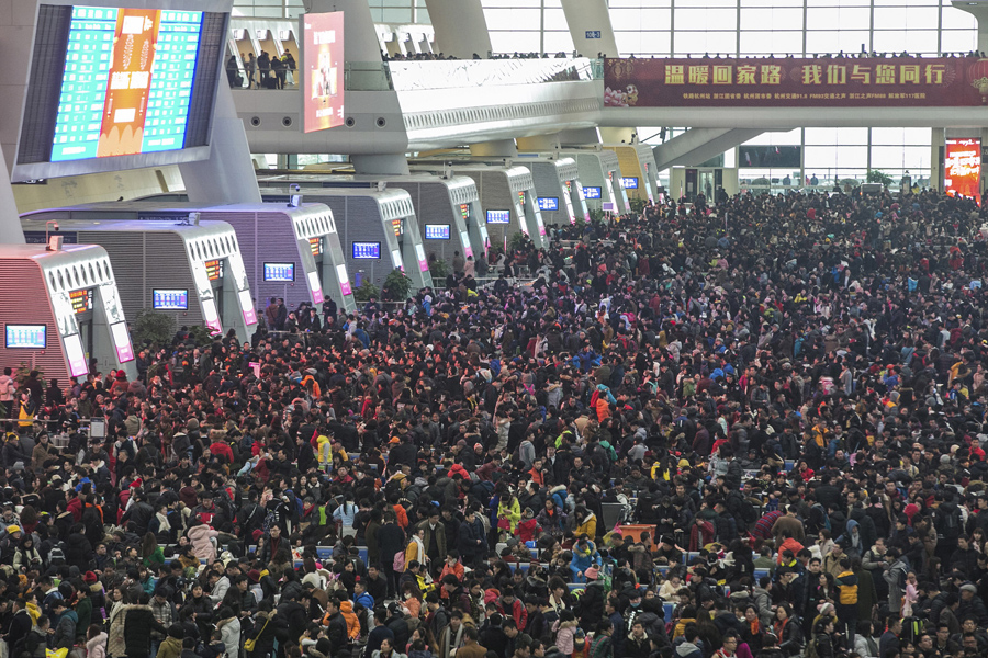 Read morePassengers crowd at the waiting hall inside a railway station after trains were delayed due to heavy snow, during the travel rush ahead of the upcoming Spring Festival, in Hangzhou, Zhejiang province, on February 1, 2016. #