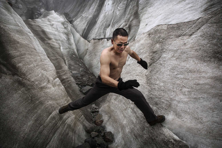 Read moreA shirtless Chinese tourist walks in the tongue of Glacier 1 at the base of the 7,556 meter (24,790 feet) Mount Gongga, known in Tibetan as Minya Konka, on November 10, 2015, in Hailuogou, Garze Tibetan Autonomous Prefecture, Sichuan province. Hailuogou is one of China's 8,500 monsoonal glaciers and the longest of 71 glaciers on the eastern slope of Mount Gongga. Monsoonal glaciers are found at lower altitudes and are at much higher risk to the effects of rising temperatures and climate change. Chinese scientists studying the impact on the Tibetan plateau warn the ablation rate of monsoonal glaciers is alarming. Data shows the Hailuogou basin glaciers have lost nearly 3 kilometers of mass since the 1960s and the rate is accelerating. #