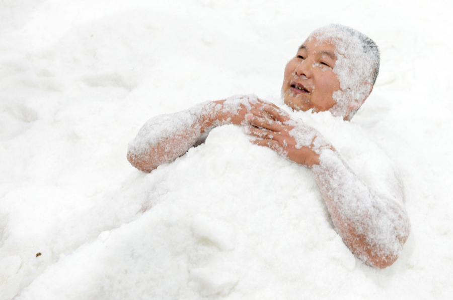 Read moreA man takes part in a cold-enduring competition in temperature of negative 6 degrees Celsius (21.2 degrees Fahrenheit), at an indoor ski resort in Changsha, Hunan province, on January 19, 2016. #