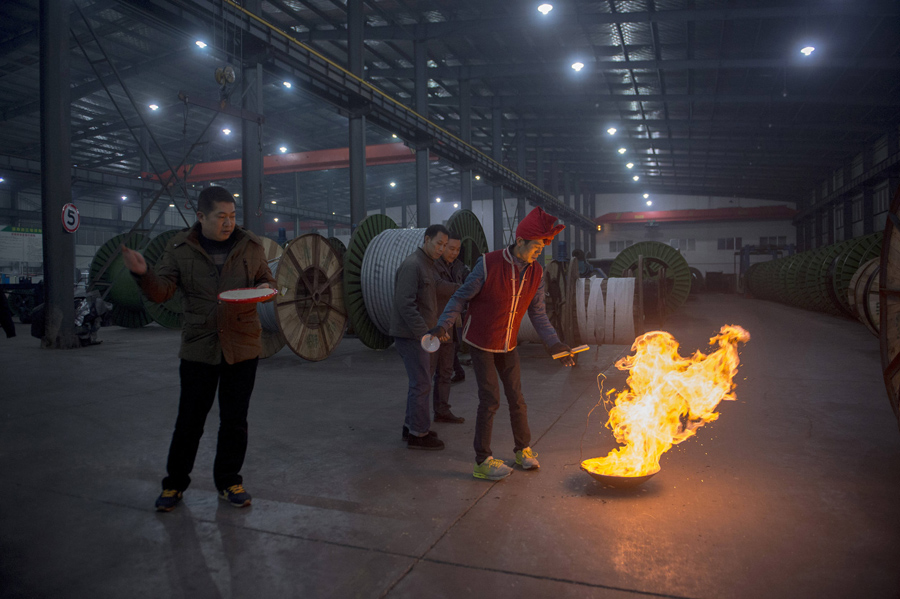 Read moreA wizard performs a traditional exorcism ceremony to chase the ghosts of a new house away, on February 1, 2016, in Changsha, China. #