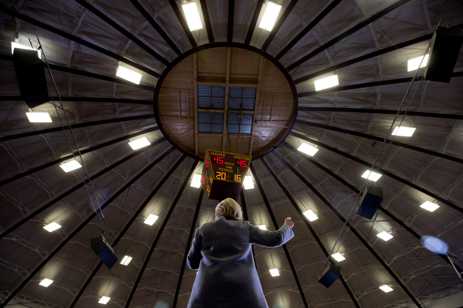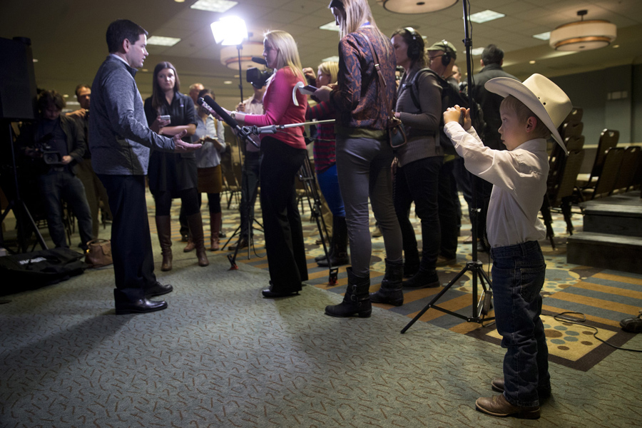 Today, the Iowa Caucus takes place, the first major event of the presidential election process for 2016. Candidates have spent months (some of them years) visiting potential voters across the state, speaking in gymnasiums, cornfields, coffee shops, bingo halls, and church basements, posing for selfies, taking questions, then moving on to the next town. Gathered here are scenes from the past few frantic months as presidential hopefuls made appearances in every corner of the state.