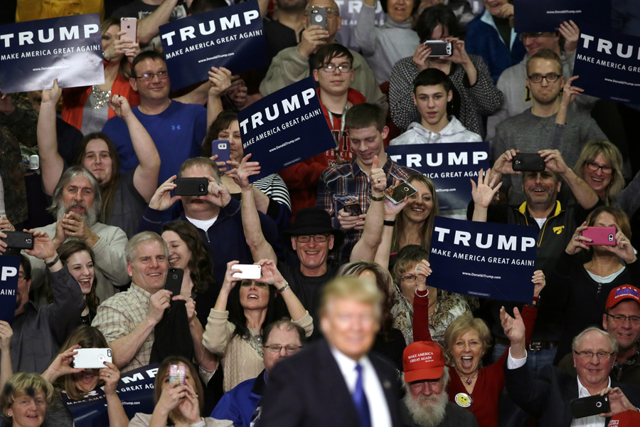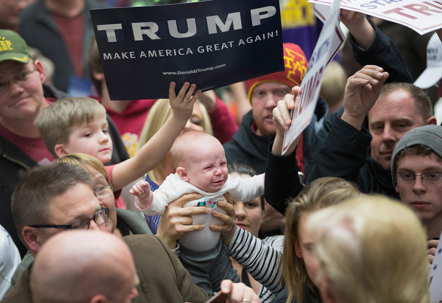 Read moreSupporters of Republican presidential candidate Donald Trump clamor for autographs after a campaign rally at the Gerald W. Kirn Middle School on January 31, 2016, in Council Bluffs, Iowa. #