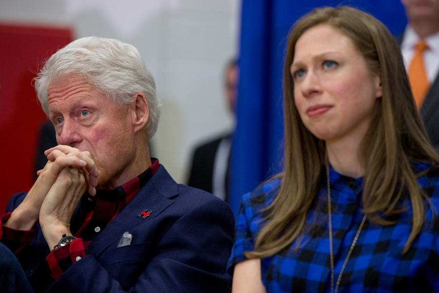 Read moreFormer President Bill Clinton and his daughter Chelsea Clinton listen as Democratic presidential candidate Hillary Clinton speaks at a rally at Washington High School in Cedar Rapids, Iowa, on January 30, 2016. #