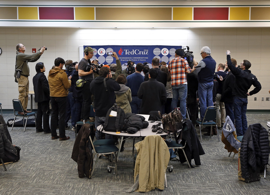 Read moreRepublican presidential candidate, Senator Ted Cruz holds a news conference before a campaign event at Western Iowa Tech Community College in Sioux City, Iowa, on January 30, 2016. #