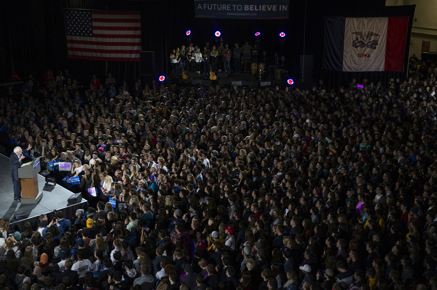 Read moreJim Stuart of Elgin, Iowa, listens as Democratic U.S. presidential candidate, Senator Bernie Sanders speaks during a campaign event at Wartburg College in Waverly, Iowa, on January 8, 2016. #