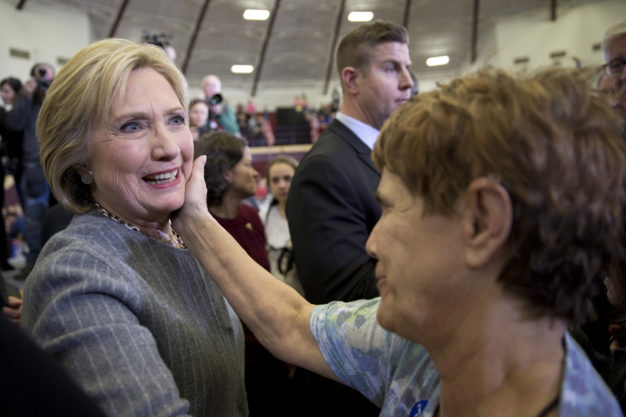 Read moreDemocratic presidential candidate Hillary Clinton greets a supporter during a rally at Abraham Lincoln High School, on January 31, 2016, in Des Moines, Iowa. #
