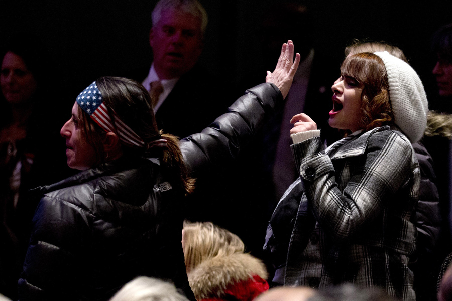 Read moreA woman tries to cover the face of a protester during a campaign event for Republican presidential candidate Donald Trump at Drake University, on January 28, 2016, in Des Moines, Iowa. #