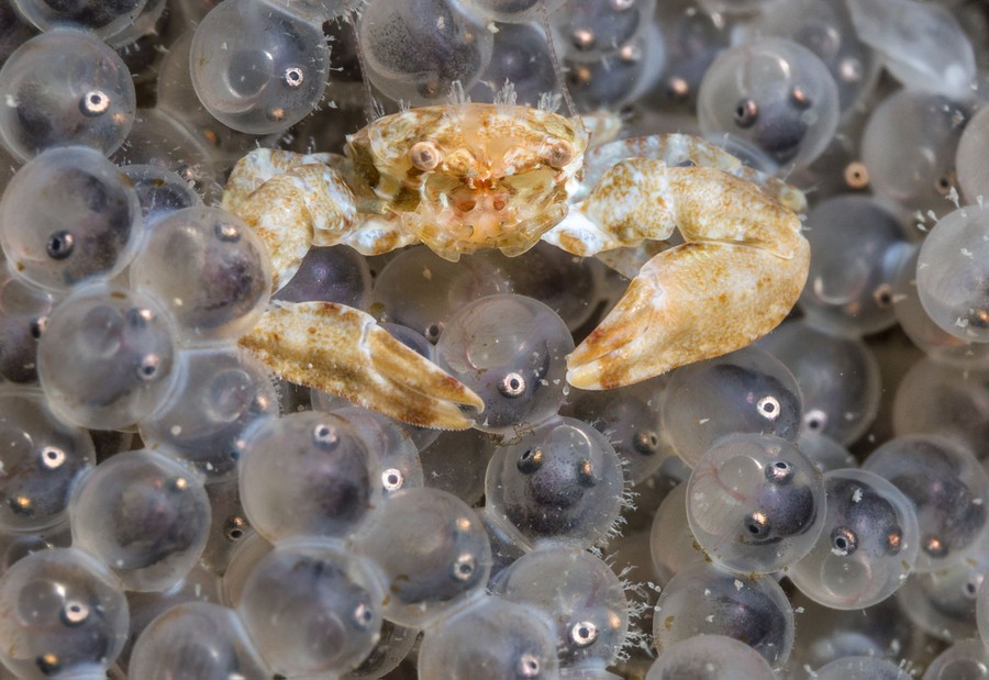 Read moreFriend or Foe? Commended, British Waters Macro. Having found a lumpsucker (Cyclopterus lumpus) tending to his newly laid eggs in the early spring, I made several visits back to the site over the coming weeks to study the development of the juveniles within the eggs. On this occasion there was a long-clawed porcelain crab (Pisidia longicornis) seeming poised to eat some of the young. Taking my time to observe, it turned out that the crab was actually helping to keep the eggs clean of parasites by eating them off the egg casings. A most fascinating behavior to watch! #