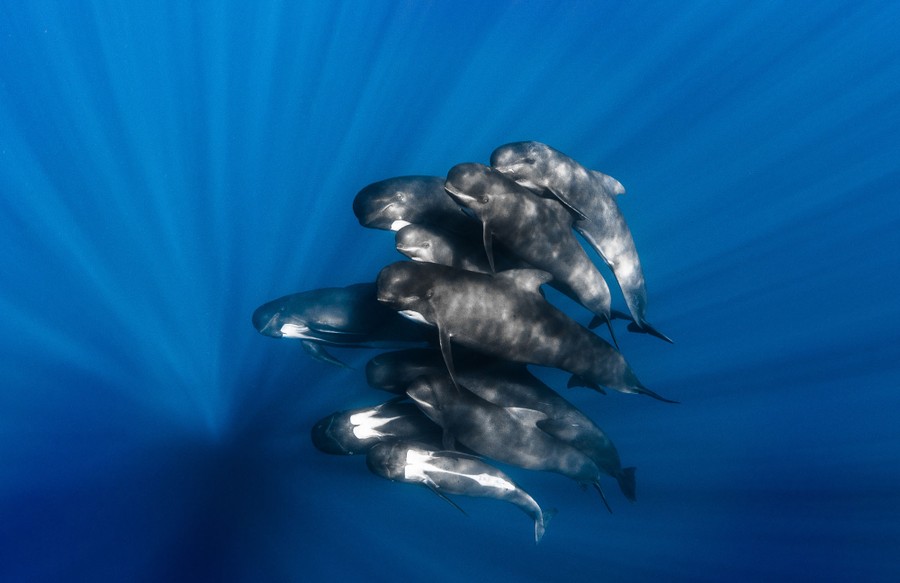 Read morePilot Whales. Highly Commended, Wide Angle. During a day sailing the Mediterranean Sea, I was very lucky to find a big pod of Pilot whales that accepted me in the blue water. They were turning around me, it was an amazing experience and a great opportunity to photograph them. #