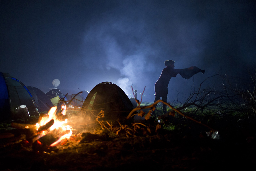 Read moreA woman hangs out clothes next to her tent as refugees and migrants wait to be allowed to cross the border to Macedonia in the northern Greek border station of Idomeni on March 1, 2016. #