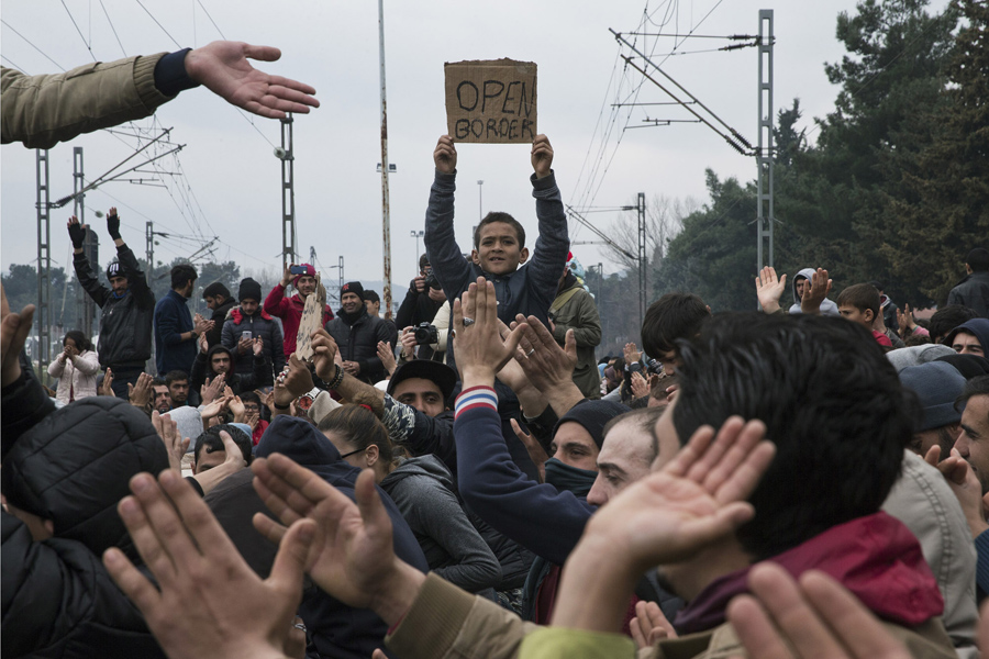 Read moreProtesting refugees and migrants block railway tracks at the Greek-Macedonian border as they chant “open the borders” in Idomeni, Greece, on February 28, 2016. #