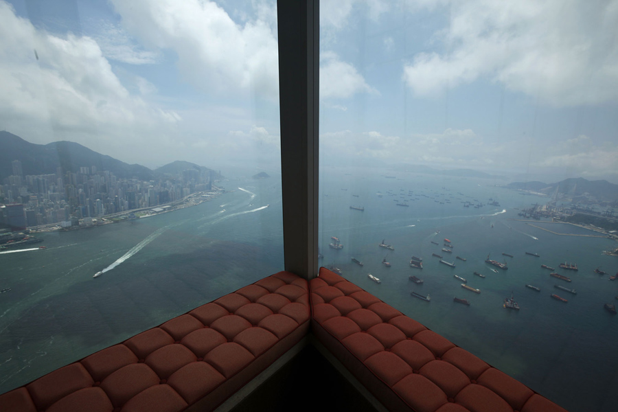 Read moreA window view overlooks the Victoria Harbour from a junior suite located on the 111th floor of the Ritz-Carlton Hotel in the International Commerce Center (ICC), the world's fourth tallest building, in Hong Kong, on May 11, 2011. #