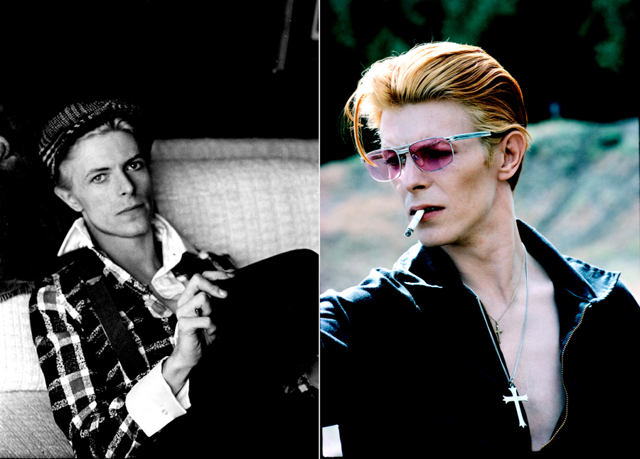 Read moreLeft: David relaxing at his home in Los Angeles in 1975. Right: David with cigarette on a break from filming “The Man Who Fell to Earth” in New Mexico in 1975. This became a Rolling Stone cover and a popular image. #