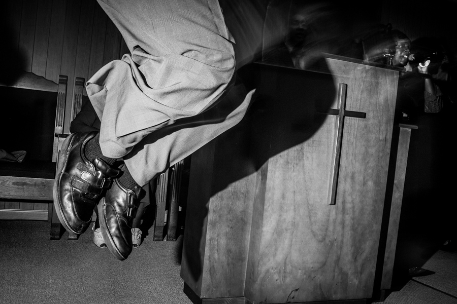 The space, with its wood paneling, fluorescent lighting and lack of windows, more resembled a waiting room than a house of god. “As a kid who grew up as a sometimes Methodist in the South, this service was completely foreign to me,” he said of the roughly 30-person congregation. “No holds barred, they are there to connect, refresh, repent, worship, and love one another.” He took 400 photographs during his first visit, afraid he would not be invited back. Luckily, he was.