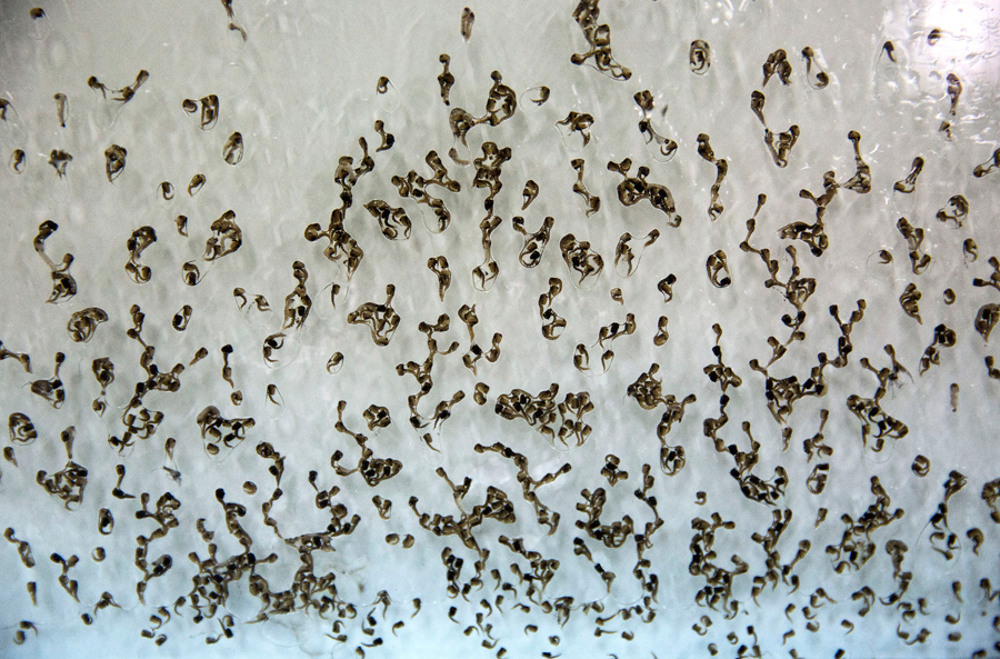 Read moreMale and female mosquito larvae are separated in the Mass Production Facility in the lab at the Sun Yat-Sen University-Michigan State University Joint Center of Vector Control for Tropical Disease, on June 22, 2016, in Guangzhou, China. #
