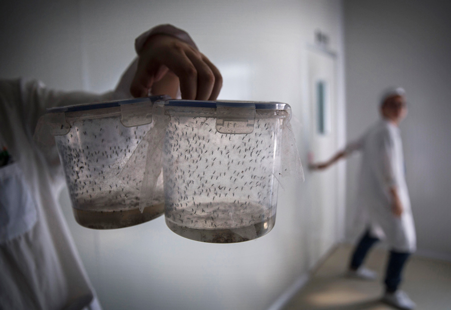 In Guangzhou, China, millions of mosquitoes are born at the Sun Yat-Sen University-Michigan State University Joint Center of Vector Control for Tropical Disease in the hopes of finding a way to fight Zika. The lab's mosquitos are infected with a strain of Wolbachia pipientis, a bacterium that inhibits Zika and and other viruses by preventing the fertilization of eggs. Researchers at the center release infected mosquitos on Shazai Island to mate with wild females, stopping the next generation. The lab claims there is 99% suppression of the population of Aedes albopictus, or Asia tiger mosquito, the type known to carry Zika virus, after the first year of tests.