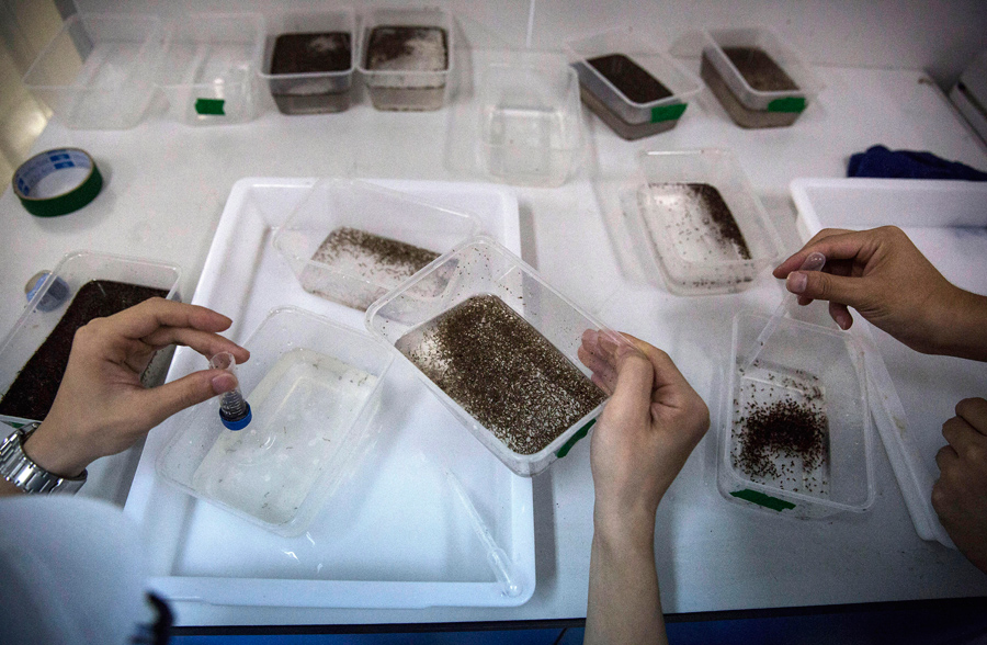 Read moreChinese technicians put pupa into dishes in the lab at the Sun Yat-Sen University-Michigan State University Joint Center of Vector Control for Tropical Disease, on June 22, 2016, in Guangzhou, China. #