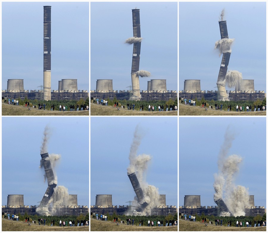 Read moreA combination of photographs shows the demolition of a chimney in the eastern German town of Boxberg October 6, 2012. Experts drilled 1653 holes for their explosives to demolish the chimney of the old Boxberg power station, which stood 980 feet tall. The other two chimneys were removed in 2009. #