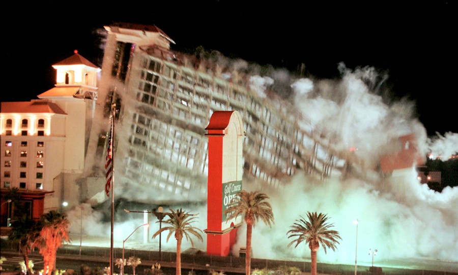 Read moreThe 15-story, 300-room Augusta tower at the Desert Inn Hotel and Casino crumbles as it implodes as seen from the New Frontier hotel-casino across the street, in Las Vegas, October 23, 2001. #