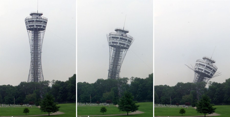 Read moreA combination photo shows The Gettysburg National Tower falls as demolition charges explode at the Gettysburg National Military Park in Gettysburg, July 3. The 320-foot, 25-year-old tower fell on the 137th anniversary of the three-day long battle as part of the Park Services plan to restore much of the battlefield property to it's original state. #