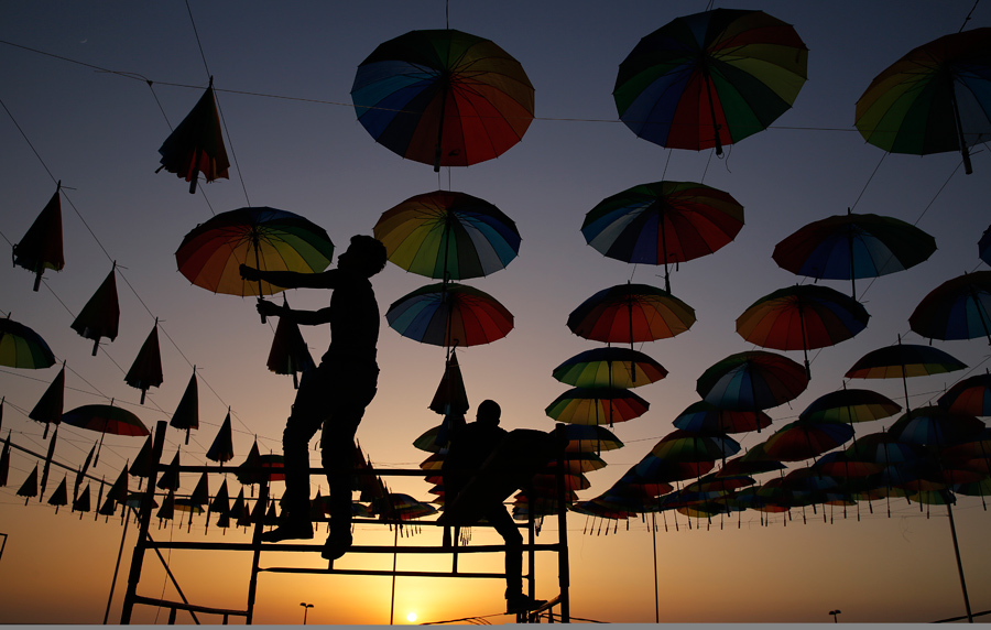 Read moreThe Palestinian owner of a beachside cafe shop decorates its terrace with hanging colorful umbrellas for the Muslim holy fasting month of Ramadan in Gaza City, on June 8, 2016. #
