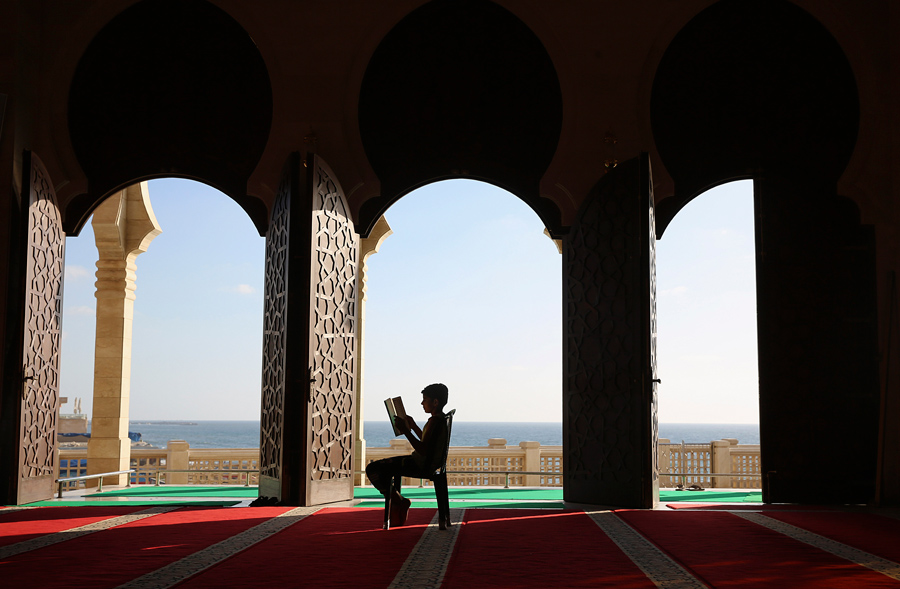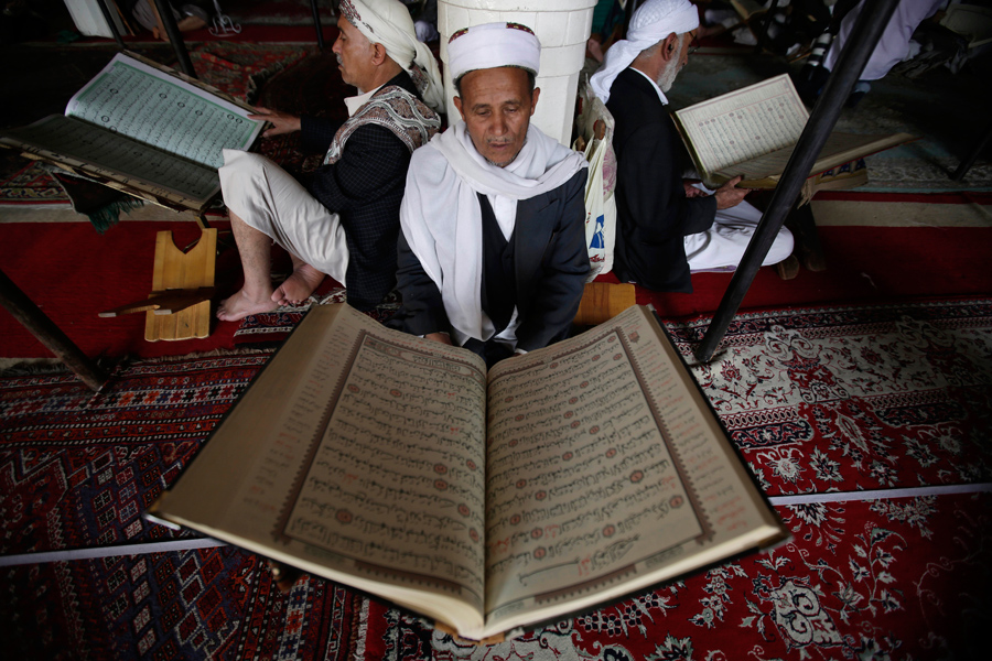 Read moreMen read verses of the Quran—Islam's holy book—on the first day of the fasting month of Ramadan in the Grand Mosque in the old city of Sanaa, Yemen, on June 6, 2016. #