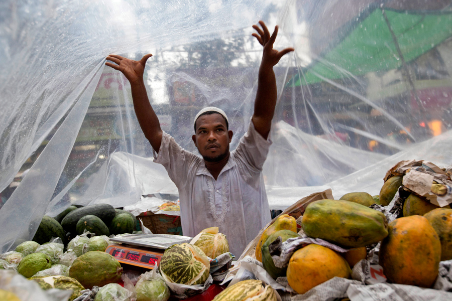 Read moreA Bangladeshi roadside fruit vendor covers his shop with a plastic sheet as Muslim devotees buy food from a market to break the first day of the holy fasting month of Ramadan in Dhaka, Bangladesh, on June 7, 2016. #