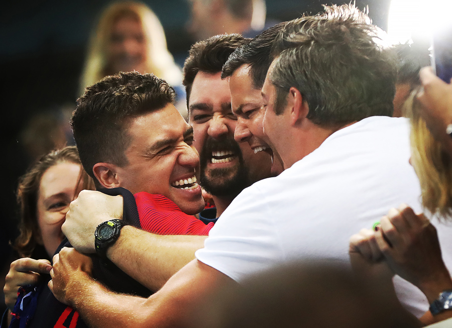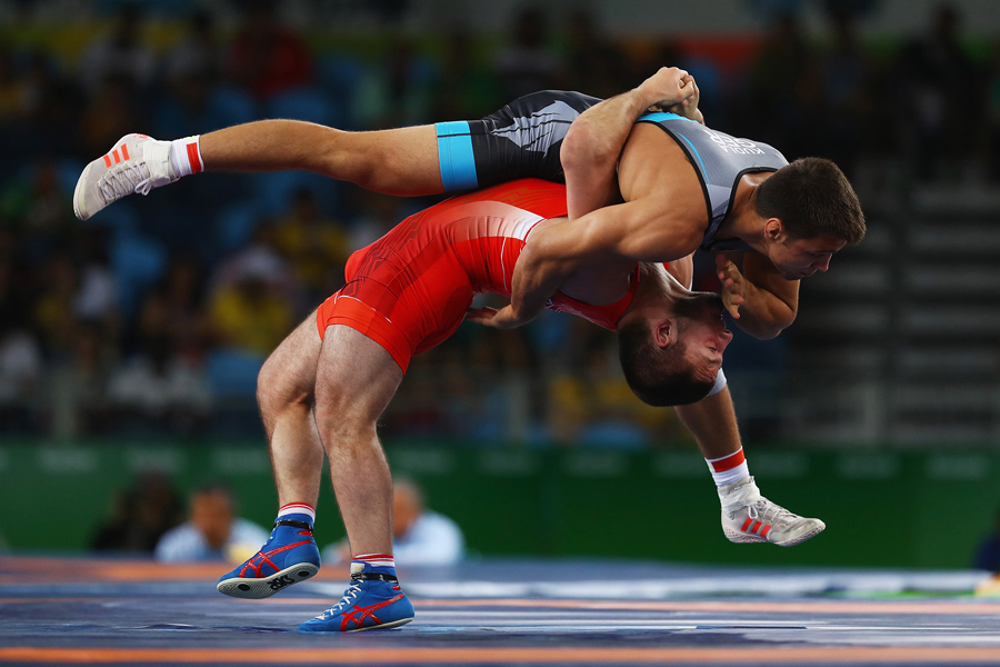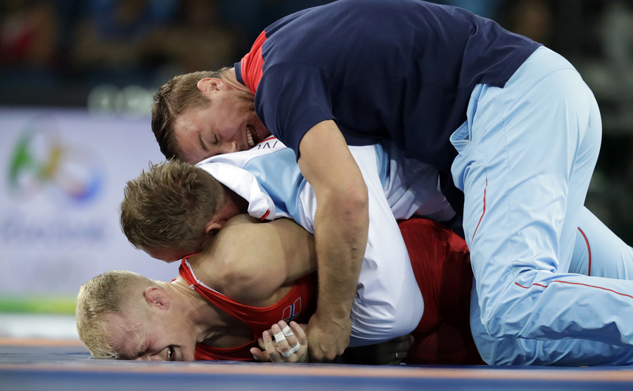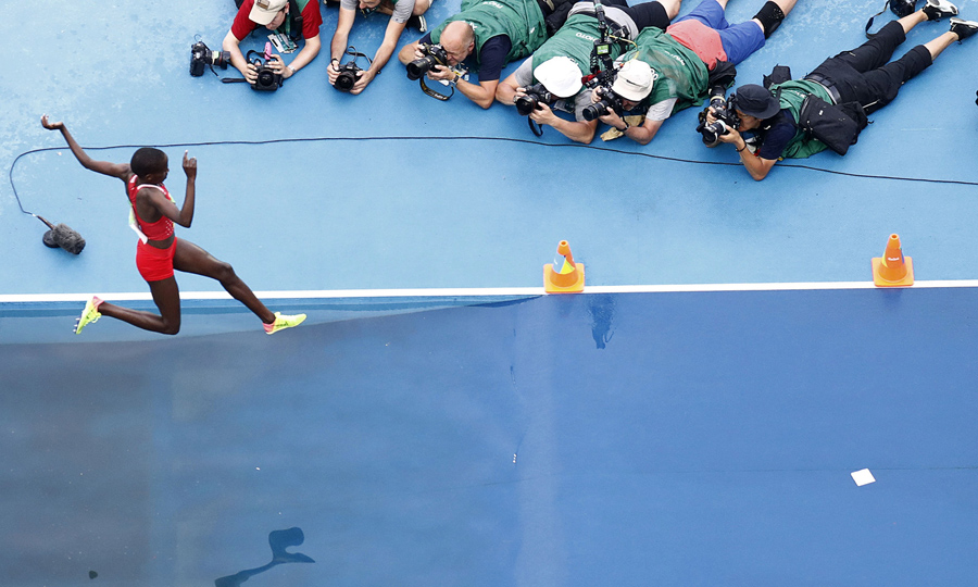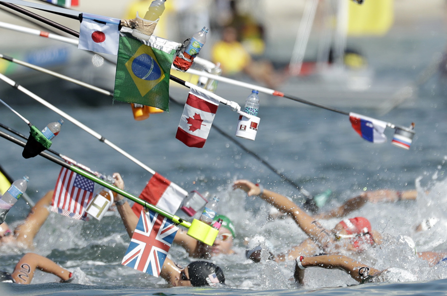 Hundreds of photographers have gathered in Rio to follow the action in the Olympic arenas, swimming pools, racetracks, and more. Over the two weeks of the games, I’ll be featuring some amazing images from recent Olympic events. Today’s entry encompasses rowing, marathon swimming, sailing, weightlifting, steeple-chase, tennis, synchronized swimming, handball, wrestling, a marriage proposal, and much more.