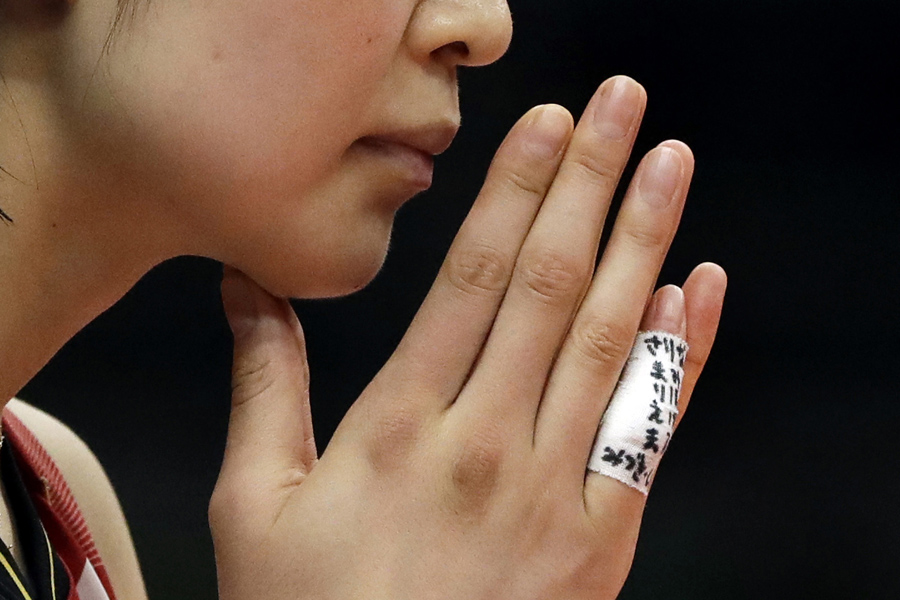 Read moreUnited States' Karsta Lowe, left, Rachael Adams, center, and Courtney Thompson stand for introductions ahead of a women's preliminary volleyball match against China in Rio on August 14, 2016. #