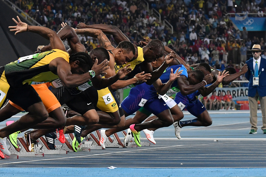Read moreFrom left, Jamaica's Yohan Blake, Ivory Coast's Ben Youssef Meite, Canada's Andre De Grasse, Jamaica's Usain Bolt, France's Jimmy Vicaut, USA's Justin Gatlin, South Africa's Akani Simbine and USA's Trayvon Bromell at the start of the Men's 100m final during the athletics event at the Rio 2016 Olympic Game on August 14, 2016. #