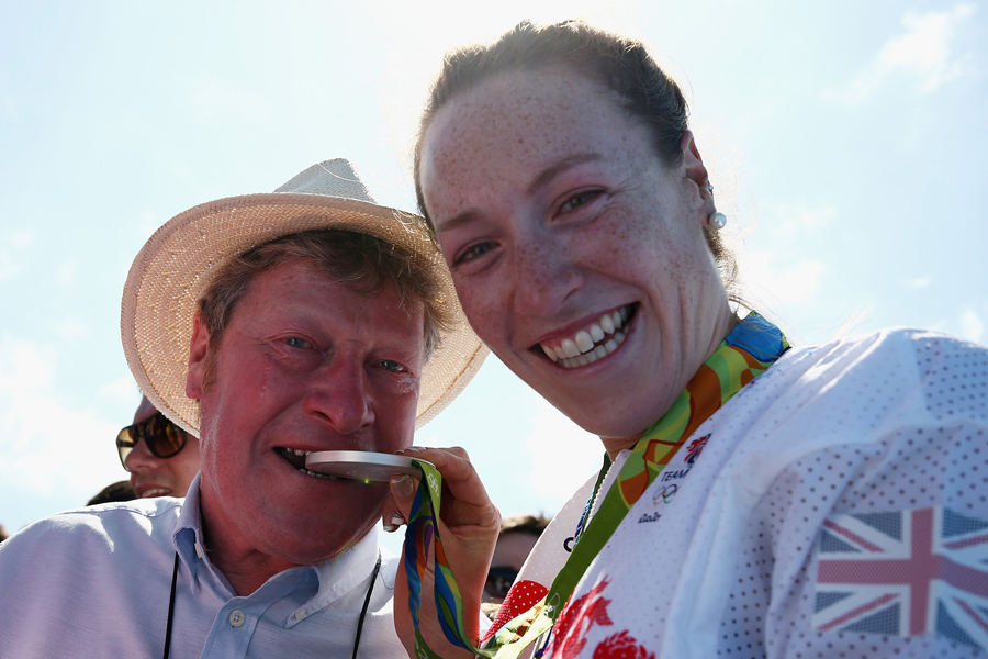 Read moreA member of silver medalists Great Britain celebrates after the medal ceremony for the Women's Eight on Day 8 of the Rio 2016 Olympic Games at the Lagoa Stadium on August 13, 2016. #