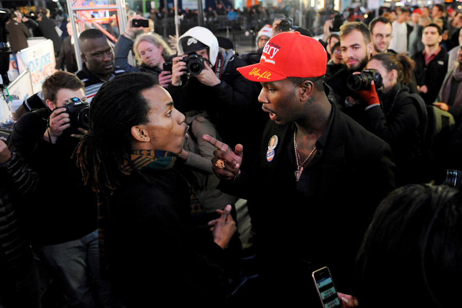 Read moreA protester argues with a supporter of Republican presidential nominee Donald Trump outside Trump Tower in New York City after midnight on election day November 9, 2016. #