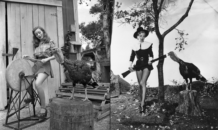 Read moreTwo actresses pose for Thanksgiving photos. Left: Actress Jeanne Crain is sharpening her ax and looking at a turkey on November 11, 1946. Right: Wearing a costume that is half-Puritan, half-chorus girl, actress Marilyn Monroe seems to have little desire to hunt turkey after finding this gobbler on November 10, 1950. #