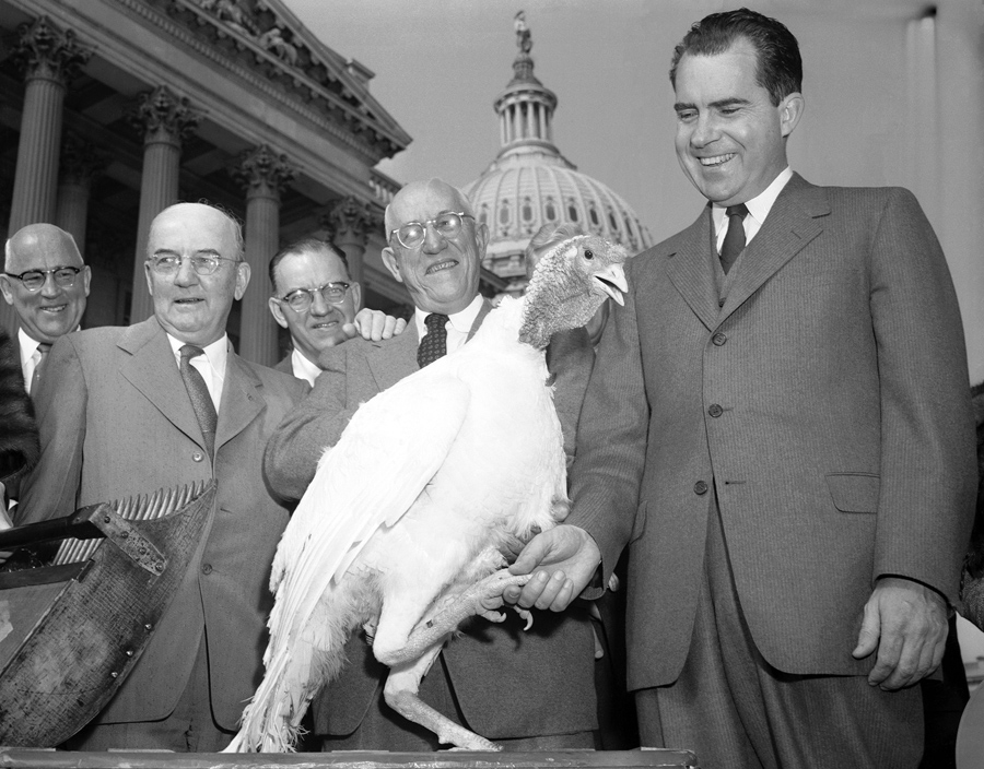 Read morePresident Harry S. Truman squints as he fingers the wattle of a 35-pound Tom Turkey from Oregon as it is presented to him, in the White House Rose Garden on November 18, 1952. #