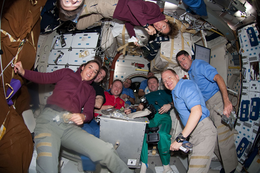 Read moreSpace Shuttle and International Space Station crew members pose for a photo during their Thanksgiving Day meal on the middeck of the orbiter Endeavour on November 27, 2008. Visible in this image are (from left) Heidemarie Stefanyshyn-Piper, Greg Chamitoff, Michael Fincke, Donald Pettit, Steve Bowen, Yury Lonchakov, Eric Boe, Shane Kimbrough, and (at top) Chris Ferguson (partially out of frame) and Sandra Magnus. #