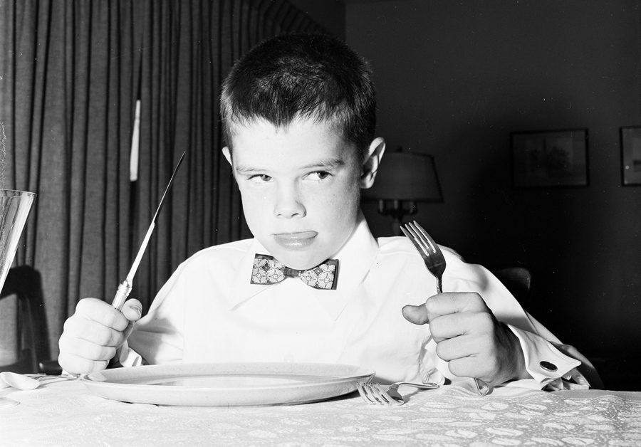 Read moreOriginal caption: Pity the poor bird with a man like this. Getting down to the bare essentials is this earnest trencherman at the Thanksgiving dinner at New York City's Municipal Lodging House, 25th Street and First Avenue on November 22, 1945. #