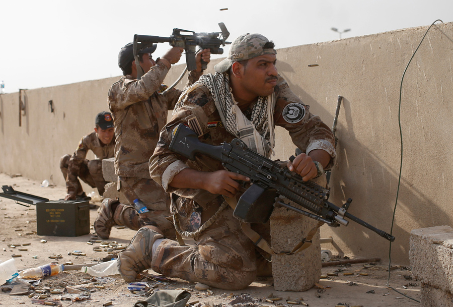 Read moreAn Iraqi special forces soldier puts up a helmet as a decoy as a sniper gets ready to fire on ISIS positions in Gogjali, on the eastern edges of Mosul, Iraq, on November 3, 2016. #