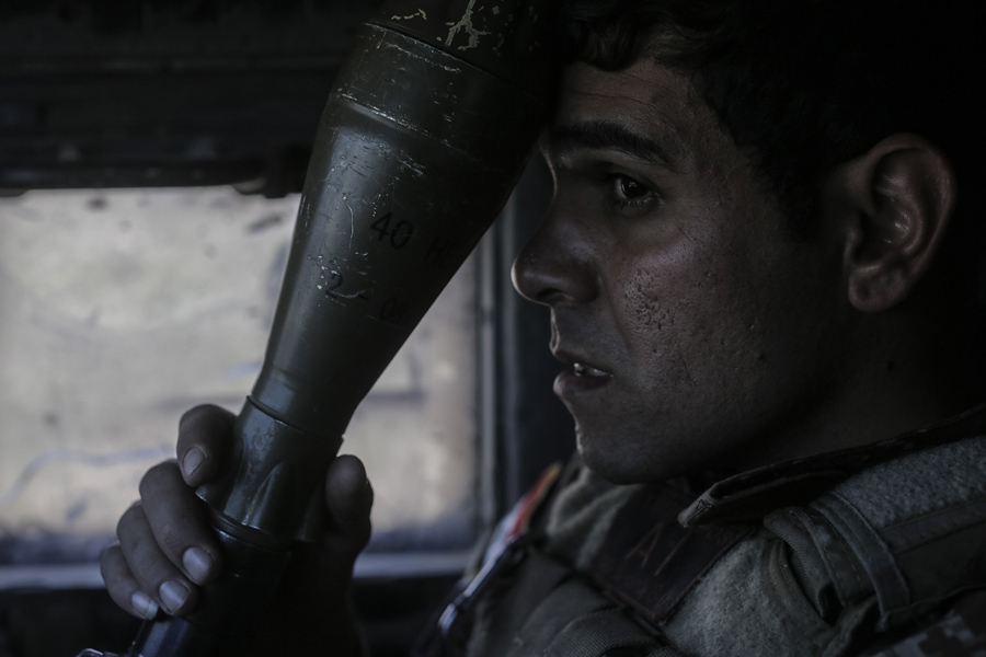 Read moreSergeant Majid holds a rocket propelled grenade as his Humvee approaches the neighborhood of Tahrir and Zahara, formerly named after Saddam Hussein, on the north eastern edge of Mosul, on November 4th, 2016, in Mosul, Iraq. #