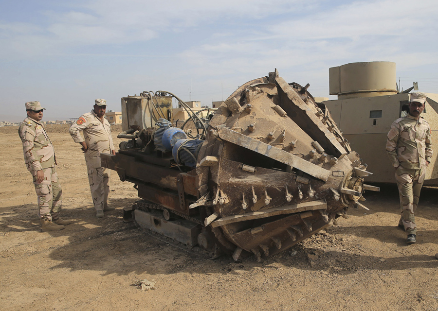Read moreIraqi army soldiers look at a tunneling machine that was used by ISIS militants, at a newly liberated Iraqi base, in Keramlis village, less than 18 miles (29 kilometers) southeast of Mosul, Iraq, on November 13, 2016. #