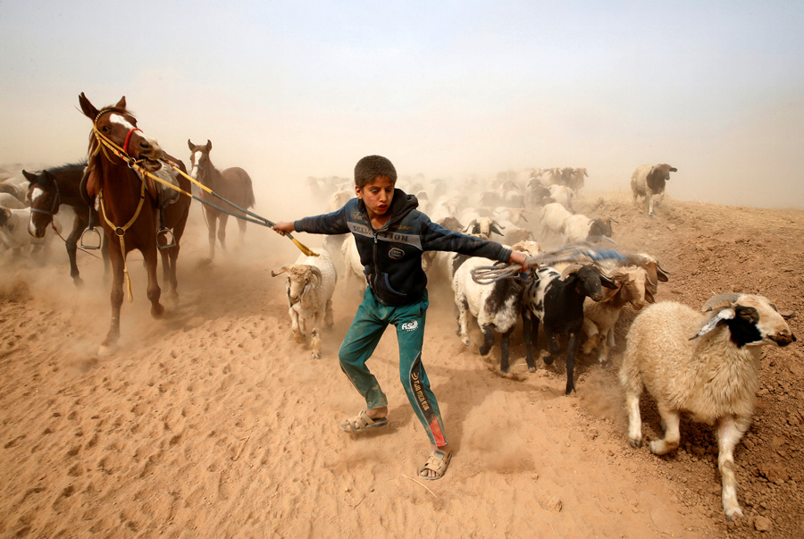 Read moreA displaced Iraqi boy leads his animals to safety after escaping from the ISIS-controlled village of Abu Jarboa during clashes with militants near Mosul, Iraq, on November 1, 2016. #