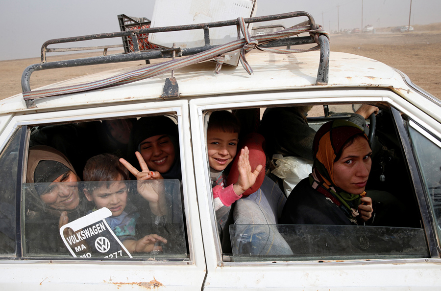 Read moreIraqi families who were displaced by the ongoing operation by Iraqi forces against ISIS foghters to retake the city of Mosul, are seen near Qayyarah, south of Mosul, on October 29, 2016. #