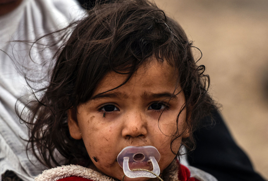 Read moreA Kurdish girl wears her relative's assault rifle and ammunition belt as she waits at the Iraqi Kurdish Shaqouli checkpoint, some 35 kilometers east of Mosul, on November 10, 2016. Since the start of the Mosul offensive the Kurds have moved their border some 10 km closer to Iraq's second city, marking it out with a line in the sand. #