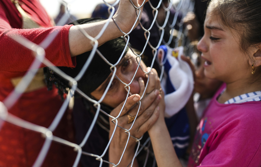 Read moreA newly-displaced Iraqi woman who fled from the city of Mosul, kisses a child's hand as she is reunited with her relatives who came two years ago to the refugee camp in the Khazir area, near near the Kurdish checkpoint of Aksi Kalak, some 40 kilometers east of Arbil following their arrival on October 26, 2016. #