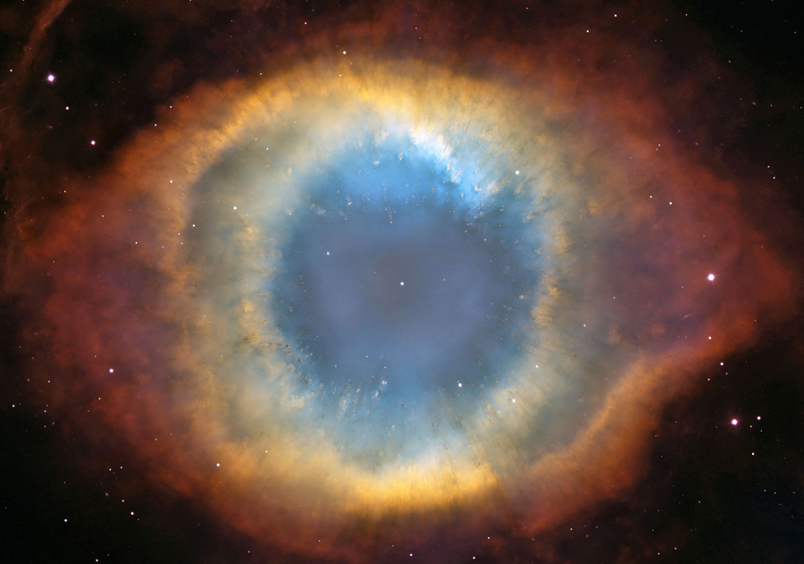 Read moreThe Helix Nebula. The Helix is a planetary nebula, the glowing gaseous envelope expelled by a dying, sun-like star. It resembles a simple doughnut as seen from Earth, but looks can be deceiving. New evidence suggests that the Helix consists of two gaseous disks nearly perpendicular to each other. The Helix, located 690 light-years away, is one of the closest planetary nebulae to Earth. #
