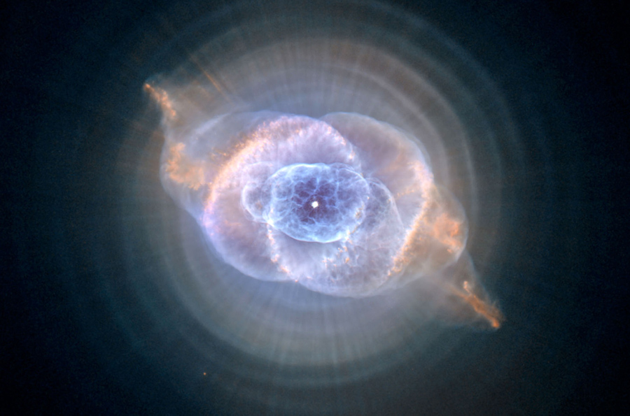 Read moreThe Cat's Eye Nebula. This nebula was one of the first planetary nebulae to be discovered, it is one of the most complex seen in space. A planetary nebula forms when Sun-like stars gently eject their outer gaseous layers that form bright nebulae with amazing and intricate structures, including concentric gas shells, jets of high-speed gas, and unusual shock-induced knots of gas. Observations suggest the star ejected its mass in a series of pulses at 1,500-year intervals. These convulsions created dust shells, each of which contain as much mass as all of the planets in our solar system combined. The Cat's Eye lies 3,262 light years distant from our solar system. #