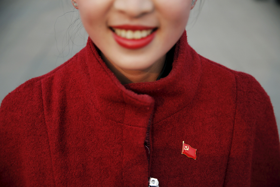 Read moreA hostess wears a pin of China's Communist Party flag ahead of the closing ceremony of National People's Congress at the Great Hall of the People in Beijing on March 16, 2016. #