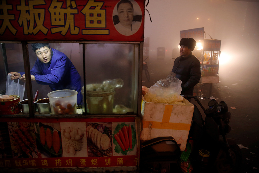 Read moreA street food vendor prepares food for customers as heavy smog blankets Shengfang, in Hebei province, China, on an extremely polluted day with a red alert issued, on December 19, 2016. #