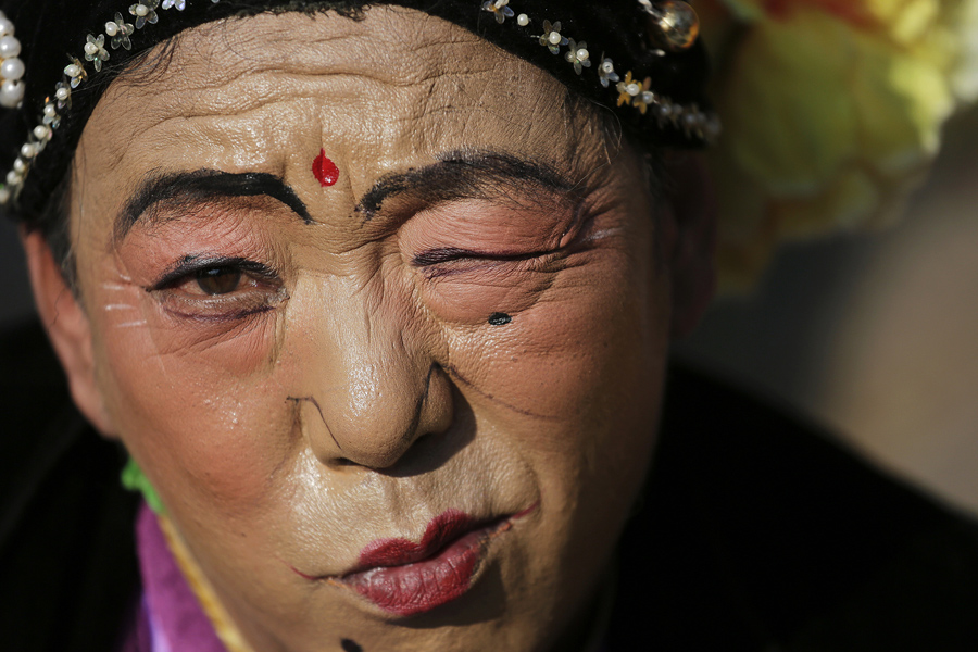 Read moreA performer makes a face for the camera as he and others wait for their turn to go onto stage at the Longtan park as the Chinese Lunar New Year is celebrated in Beijing on February 9, 2016. #